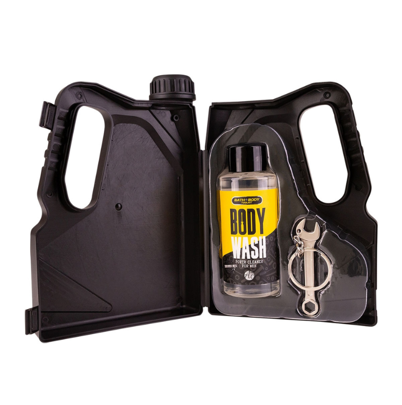 Um presente original e cheio de personalidade. Apresentado numa embalagem criativa em formato de galão de óleo (amarelo/preto), é perfeito para surpreender quem gosta de detalhes diferentes e funcionais.