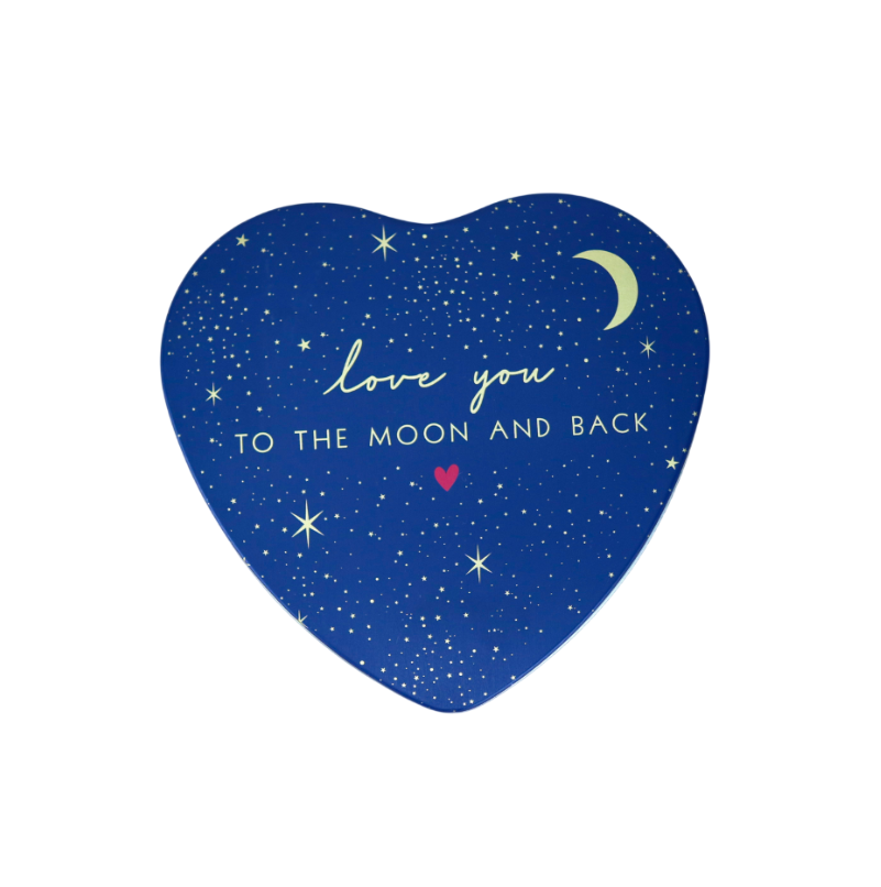 Lata Sara Miller London recheada com 6 bombons de avelã e cereais.
